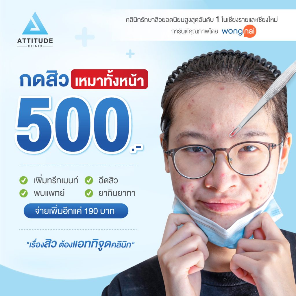 โปรโมชั่นรักษาสิวด้วยการฉายแสง สิวจบใน 7 ขั้นตอน ไม่มีเลี้ยงไข้ ฟรียากินยาทาในคอร์ส คุ้มสุด! สิวหายแล้วกว่าหมื่นเคสที่ Attitude Clinic