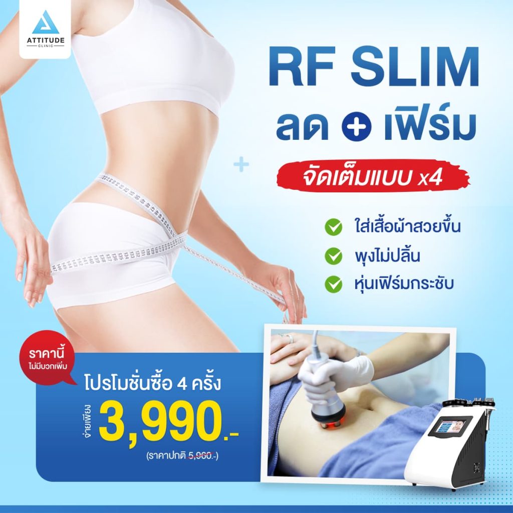โปรโมชั่น RF SLIM สลายไขมัน ลดเซลลูไลท์ กระชับสัดส่วน เทียบผลหลังทำทันที สุดคุ้ม 4 ครั้งเพียง 3,990 บาท จากราคาปกติ 5,960 บาท
