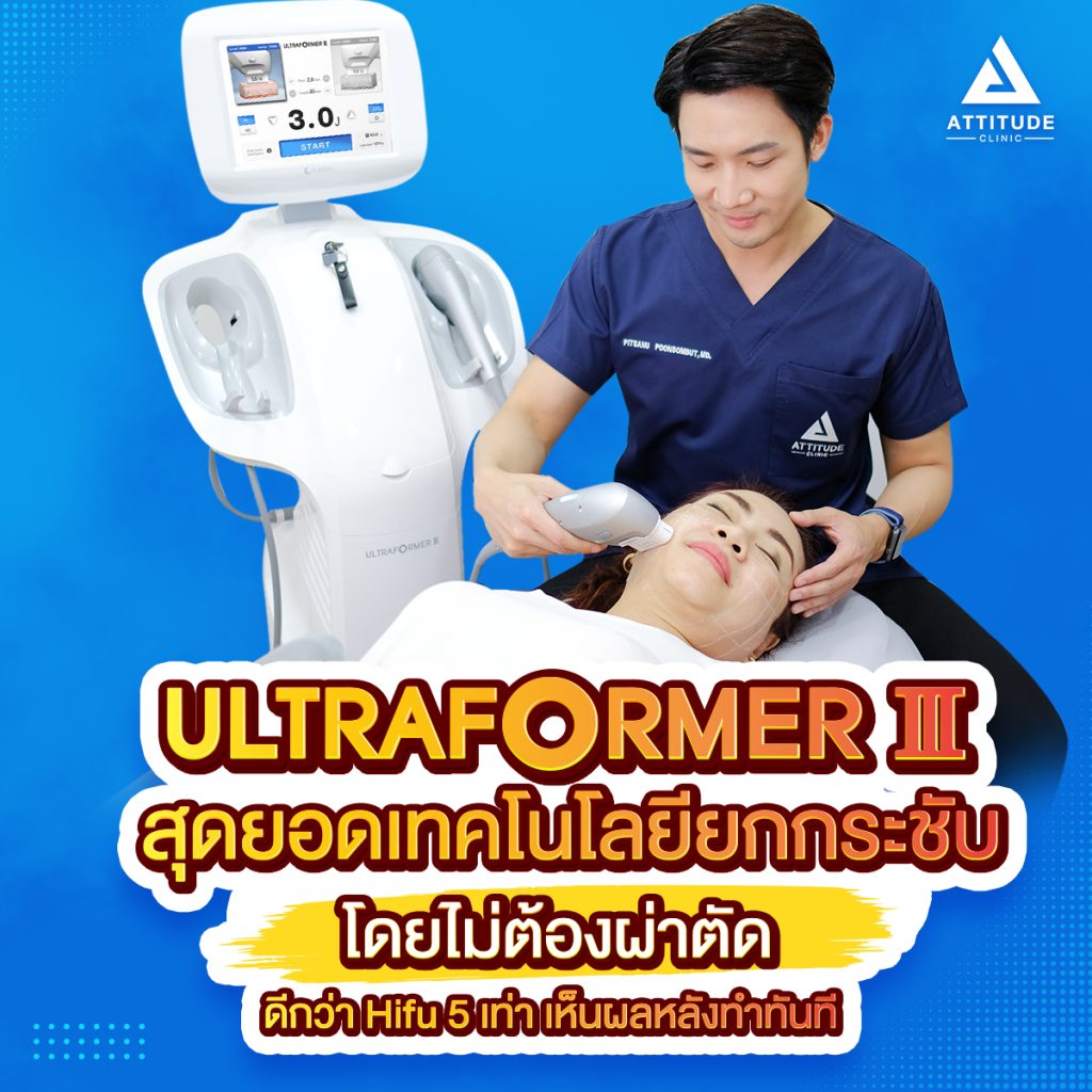 ![เสิร์ฟโปรแกรมยกหน้าแบบไม่ต้องใช้เข็ม [โปรโมชั่น] โปรแกรม MMFU ยกกระชับใบหน้า ยกพยุงผิวปรับรูปหน้า ลดเลือนริ้วรอย ลดปริมาณไขมันใต้ผิว ช่วยให้กรอบหน้าได้รูป ผลลัพธ์ต่อเนื่อง 6-9 เดือน](https://www.attitudeclinic.com/wp-content/uploads/2025/01/199-Ultraformer-lll_Revise2-02-1024x1024.webp)