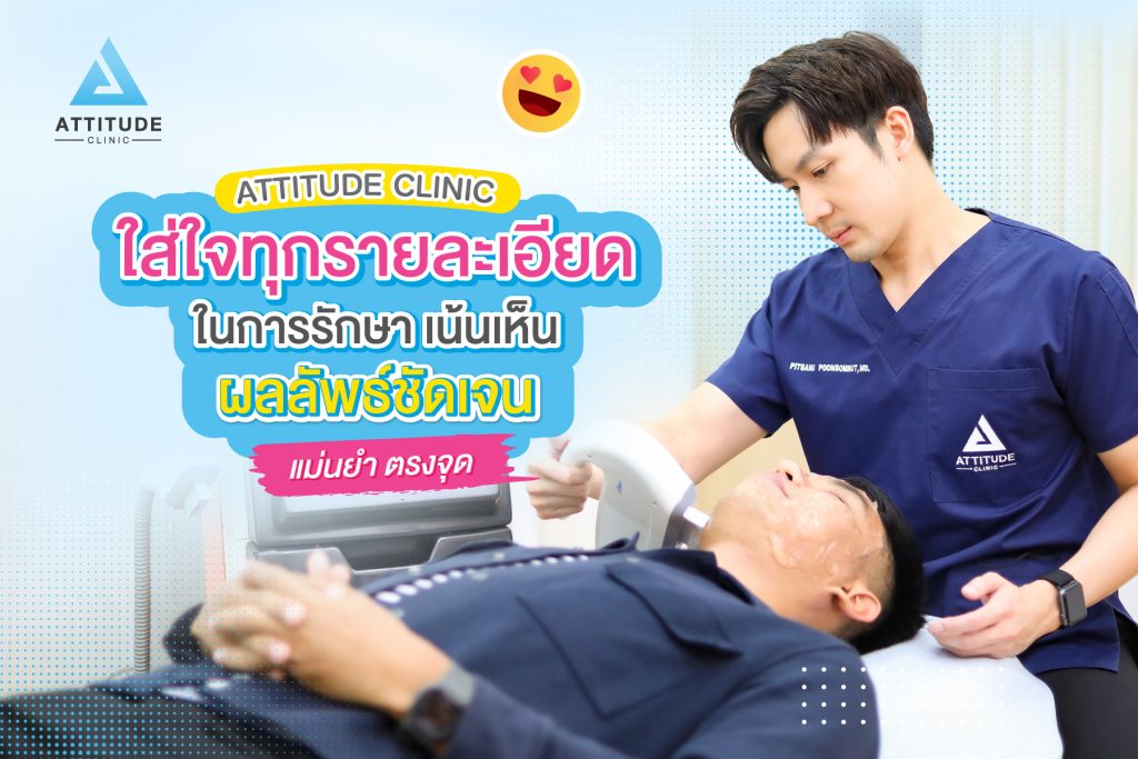 Attitude Clinic หมออยู่ทุกวัน ดูแลเองทุกเคส ใส่ใจทุกรายละเอียดในการรักษา เน้นเห็นผลลัพธ์ชัดเจน แม่นยำ ตรุงจุด